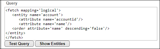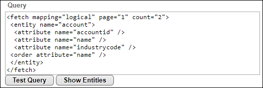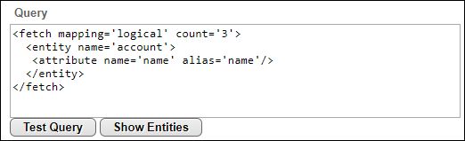 - Fill in the Query box using the FetchXML query language. You can create the FetchXML query in two ways:
