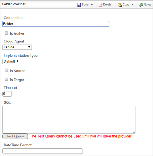 Query box is intended for entering a test query. The user can test the query once the connection is saved. |