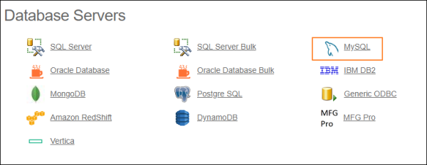 - On the Connector Selection Page select the MySQL item from the Database Servers section..