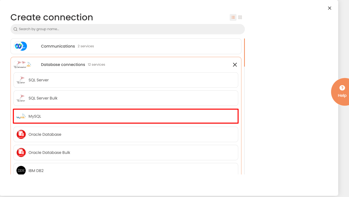 - On the Connector Selection Page select the MySQL item from the Database Servers section.