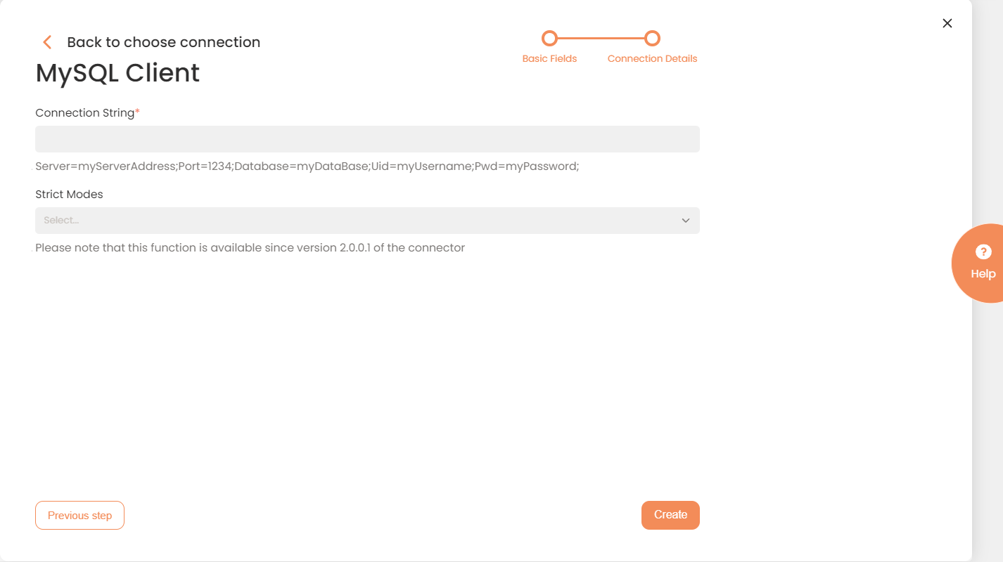 To configure the MySQL connector, follow the instructions below: